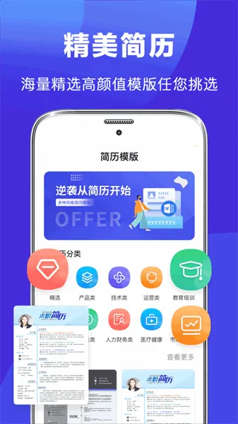 2. 拥有丰富多样的电子简历模板,涵盖清新简洁、个性设计、时尚等诸多类型,且可免费下载和在线编辑。