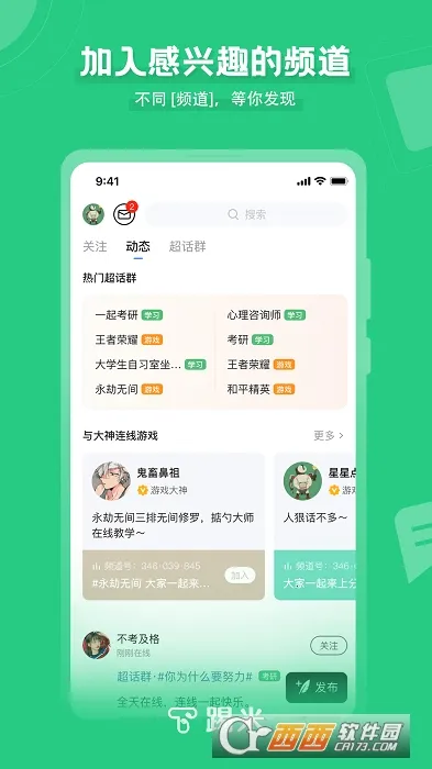踢米是一款社交学习软件,特色鲜明。它有多种频道,个人频道供用户与好友私密交流,群聊频道能结识有趣伙伴,生活圈子可分享点滴、了解好友动态,发现频道帮用户快速找到感兴趣的人和内容。这里交友方式丰富,能让各地陌生人相互认识,还提供符合年轻人喜好的社交平台,玩家可随时连线打游戏。此外,它在学习方面表现出色,能通过大数据分析修正学习状态和目标,道友间相互督促激励,提高学习效率,还能实时跟进学习进度。