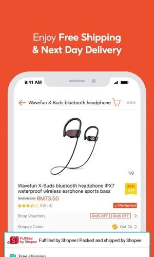 2. 优惠折扣享不停:有各种折扣活动,还能从每日震撼销售中节省资金,通过购物、签到和游戏赚取Shopee硬币,享受更多优惠。