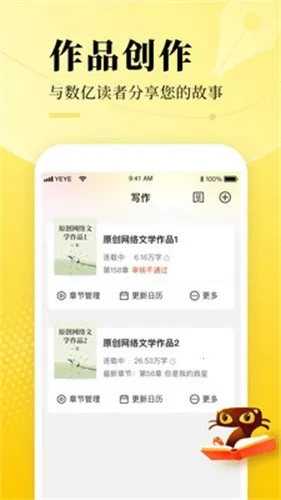 4、管理超省心,可轻松记录更新作品,利用更新日历跟踪进度,享受便捷发布和章节管理,收益管理也出色,详尽收益信息助你有效管理创作成果。