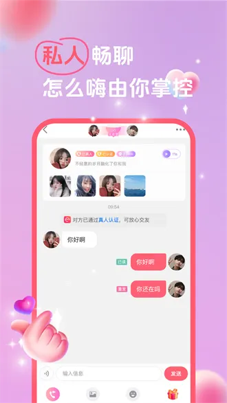 她缘交友是一款提供语音社交交友的平台,能满足渴望扩大社交圈子、寻找恋人或结识新朋友的男女需求。它采用智能算法,根据用户兴趣、年龄、性别、地理位置等信息,快速匹配合适对象,提高交友效率。软件注重用户隐私保护,所有用户均须通过实名认证、人脸识别等多重审核,确保信息真实可靠,还有举报机制处理不良行为。这里提供丰富互动功能,像语音聊天、视频交友、动态分享等,让你在轻松氛围中结交新朋友。你可以填写个人信息,系统自动匹配合适对象,查看对方信息照片后再决定是否深入交流。支持语音、视频聊天,还能发布生活动态吸引志同道合的朋友,加入兴趣圈与同好交流互动。总之,她缘交友在安全、高效、有趣等方面都有保障,能帮你解决交友难题,轻松找到有缘人。