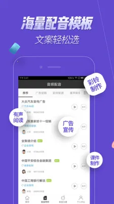3、提供海量高质量真人成品录音,风格丰富,效果震撼,素材丰富,有海量样音文案模板和优质背景音乐,可打造独特配音效果。