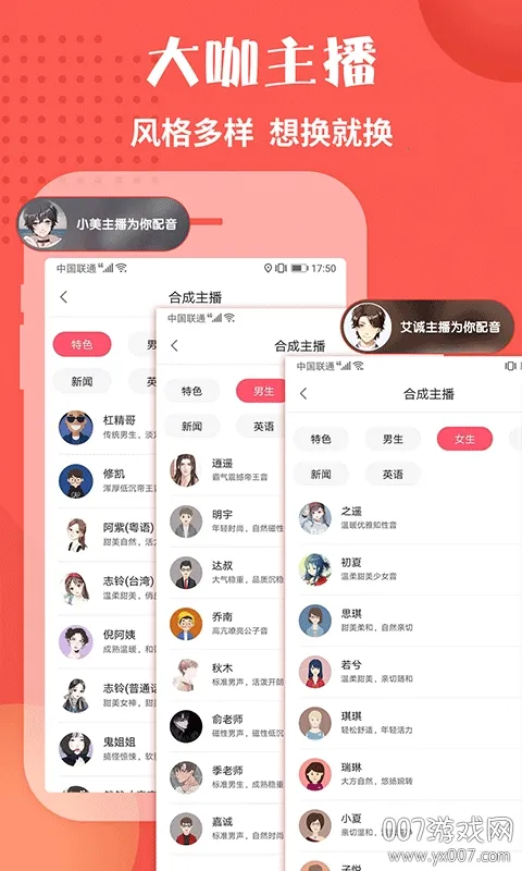配音神器安卓版手机版特色显著。操作简单,文字能轻松秒转语音,一键导出MP3,高效省时。素材丰富,有海量样音文案模板与优质背景音乐,可打造专属配音效果。提供多种男女中文方言、童声等数十位智能合成机器发音人语音声,随意切换。还支持一键导出所有音频文件内容至手机、U盘,离线播放。无论是广告促销、有声阅读还是教学录音等场景,都能满足,轻松打造多样风格,满足不同需求。