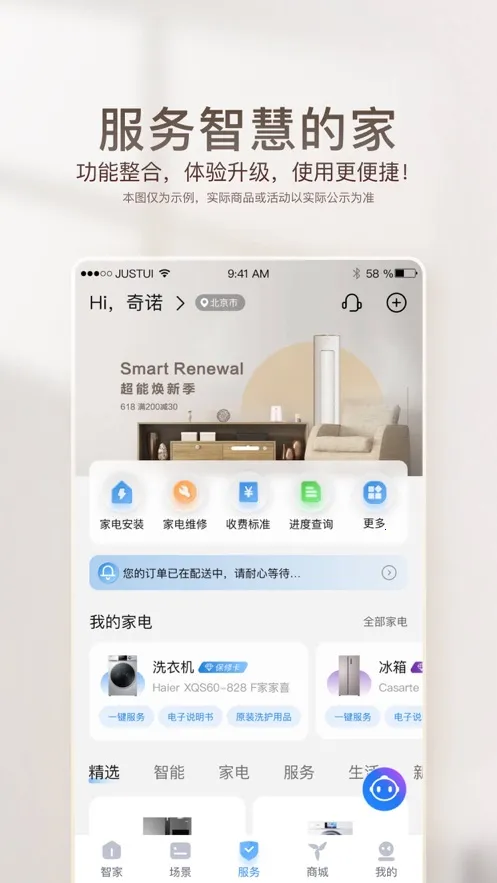 1. 全流程可视化服务:提供家电购买、送装、保养到清洁、维修、移机、换新等一站式全场景服务,还能轻松查询维保进度和家电购买及保修期等信息,是家电全生命周期智能管家。