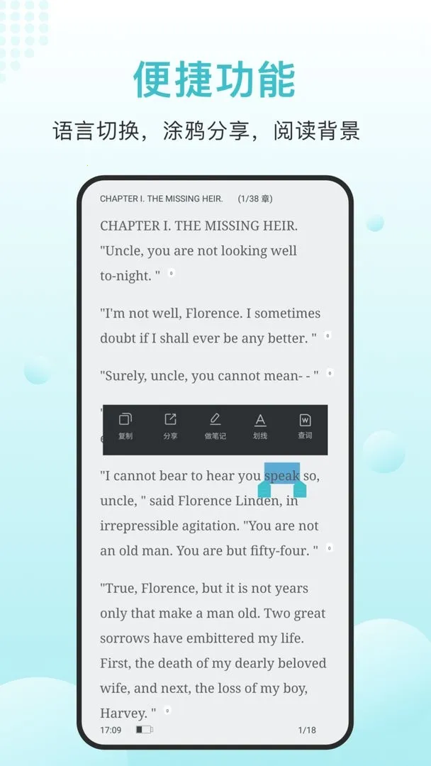 英语读书2025官方最新版本特色满满。它拥有海量丰富的书籍资源,涵盖图书传记、经典影视剧、名人演讲等各类别。提供标准外教配音,双语呈现助力提升听力与发音。支持一键加入书架和书签,方便管理且能离线阅读。设有阅读圈子,可与书友分享阅读经验。具备便捷的查词翻译功能,还有单词本方便温习。能随意切换双语内容,体会中英文化差异,多种语速和字体大小选择,全方位满足不同学习者需求,让英语学习轻松又有趣。