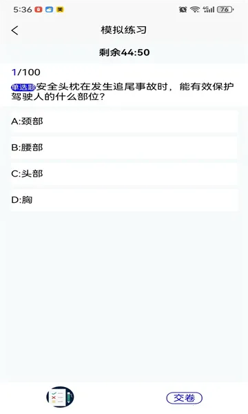 软件功能超贴心,能自动记录错题,收藏喜欢的题,复杂题还能做笔记。练习模式多样,随机练习、顺序练习、模拟考试任你选。还有人性化设置,比如能调整字体大小、自动跳题、开启夜间模式。它会根据你的答题情况智能推荐题型,模拟真实考试环境,锻炼应变能力。无论何时何地,打开手机就能学,不受限制。练习记录能让你了解学习进度和薄弱环节,错题本方便针对性复习,还能设置学习提醒,提供交通规则、驾驶技巧等学习资料,助你全面了解驾考,提高通过率。