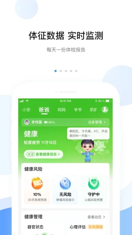1. 健康数据自动监测:配合智能手表,自动收集心率、血压、血氧等数据,还能统计分析潜在疾病风险,助用户了解身体状况,及时改变生活习惯,预防重大疾病。