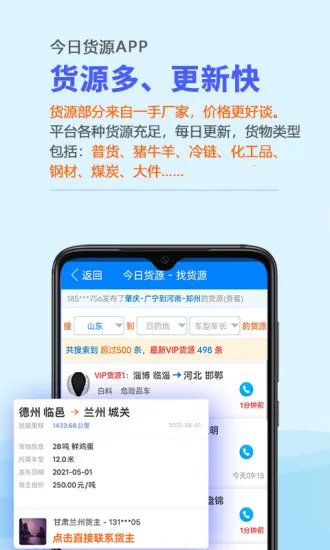 3. 便捷沟通:提供货主电话,无需退出应用重新拨号,直接就能电话沟通,方便快捷。