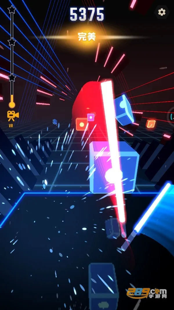 4、玩法新颖独特:玩家跟随音乐节奏闯关,挥舞光剑切割从远方过来的方块,连续成功击中方块可获得分数加成,玩法简单却刺激好玩。