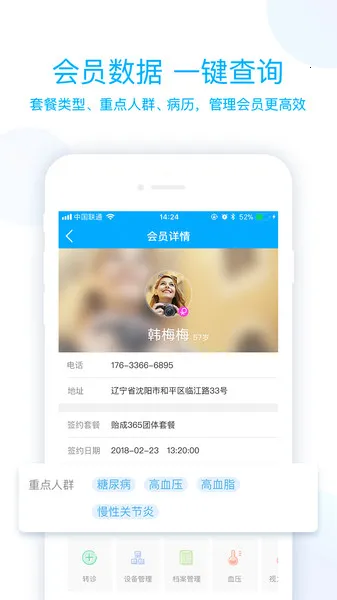 1、便捷操作:随时随地与患者在线交流,查看病历、开具处方等,还能进行签约统计、筛选人群及管理会员,提高工作效率。