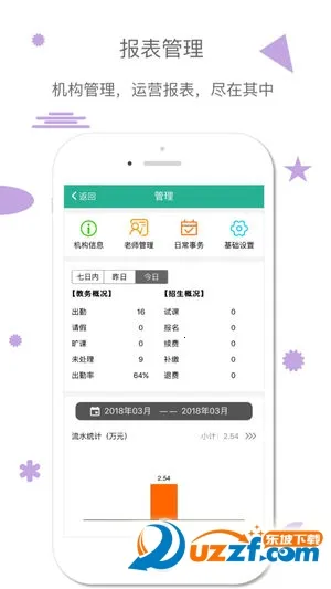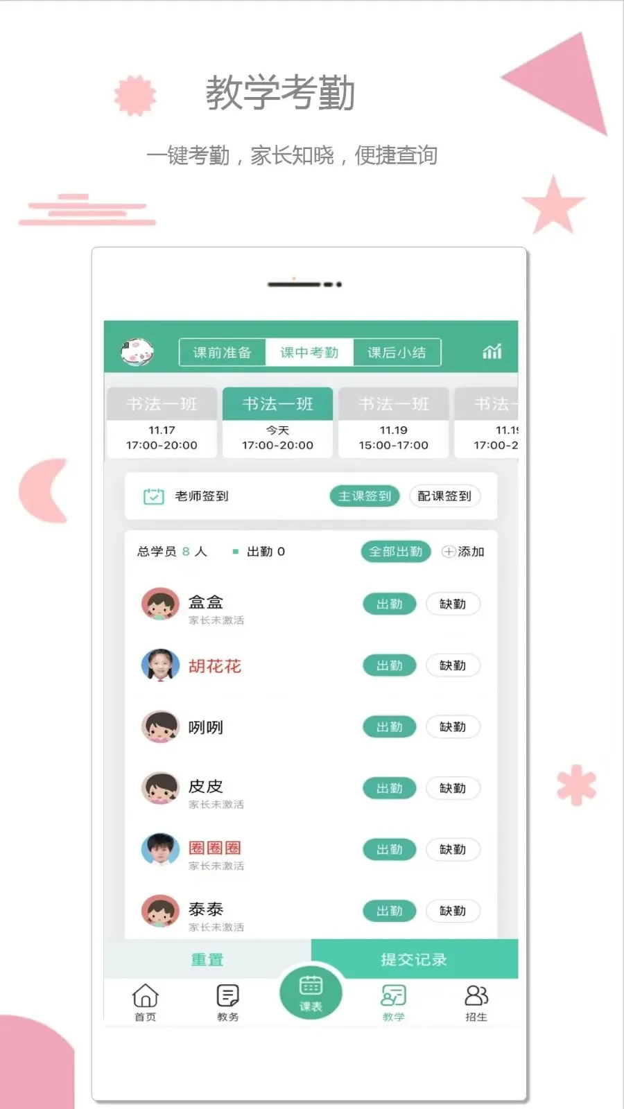 雷小锋手机版是一款专注于移动端的培训机构管理工具,适用于30人以上规模的管理。它能将教务、教学、招生、运营、交流等五大板块一站式展示,大大方便了教育机构的管理流程。用户可以在软件上实现一键打考勤,上传学生作品,家校互动,机构微官网招生等。
