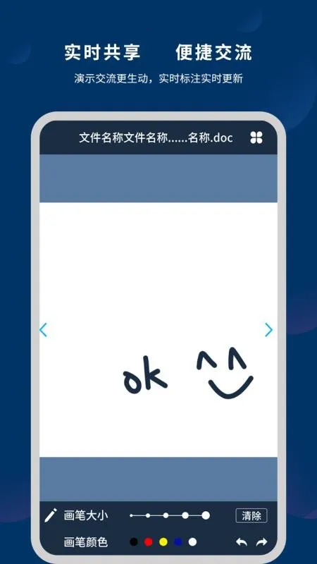 2. 上传文档即可共享,在线预览文档内容。支持屏幕共享,实时更新标注内容,能任意选择画笔批注,打破时间和空间限制,实现多格式文档共享,在线可查看任何格式文档。