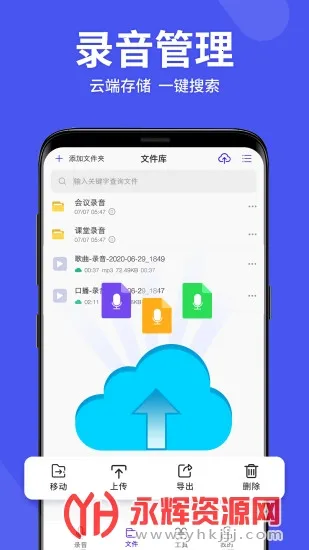 3、音频可上传至云端存储,不占手机空间,重要音频不丢失,且手误删除的音频能在回收站找回。