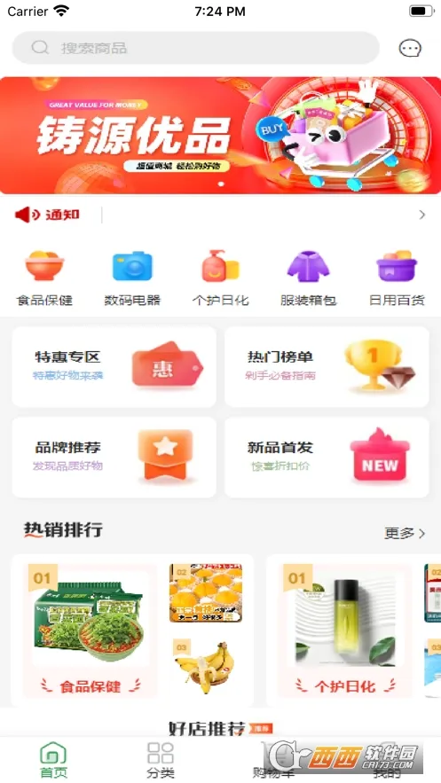 铸源优品升级啦!它是一款超棒的电商购物商城。这里有海量优质商品,分类超细致,日用百货、数码电器、食品保健等应有尽有,每个大类又分小类,方便你筛选。精选的商品品质与性价比超高,满足各种需求。购物流程超便捷,支持多种支付方式,在上方搜索框搜商品就能买,点击下方分类可筛选。还有热门商品排行榜实时更新。它能智能推荐个性化商品,提升购物体验。定期有优惠活动,与知名品牌合作有专属产品。商品信息详细,购物环境安全,界面设计简洁明了。有专业物流配送,提供及时物流信息和送货上门服务。不管你想买日常用品还是时尚潮品,铸源优品升级版本都能一站式满足你,让购物轻松又实惠。