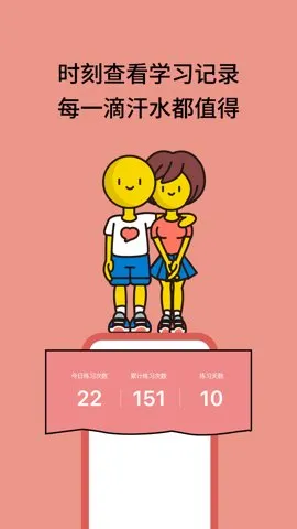 4. 学习进度可查看:能查看个人学习进度,了解每天练习次数,满满成就感,还有专业恋爱团队助力用户找到心仪另一半。