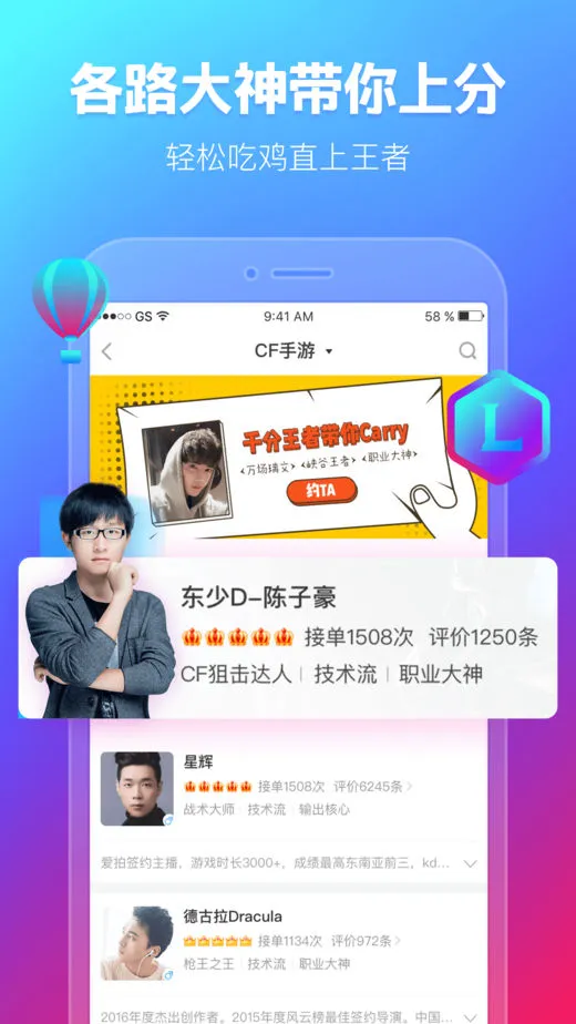 2. 多样服务:提供游戏上分、大神带飞、美女陪玩、主题服务等,涵盖多种热门游戏,满足不同需求。