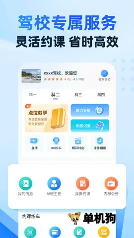 驾考宝典智慧驾校版是驾考宝典官方为驾校学员打造的学习应用。整合全科目题库等实用功能,搭配约课服务,联动驾校智能设备,提供详细练车报告,还能获答题口诀、老师辅导,助学员高效备考、轻松拿证。