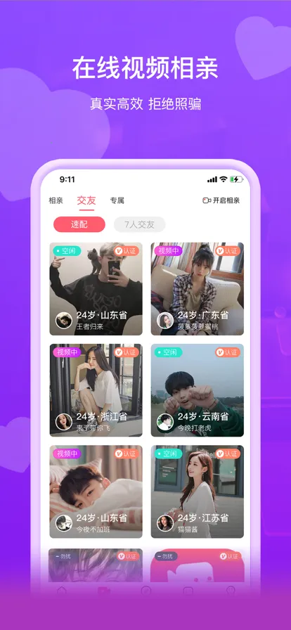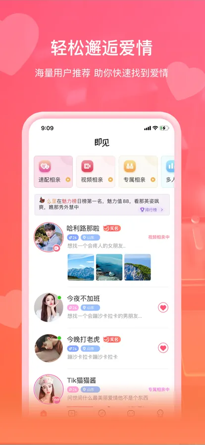 2. 拥有多种交友模式,如视频相亲、速配相亲等,能快速为用户匹配合适对象,简单便捷。