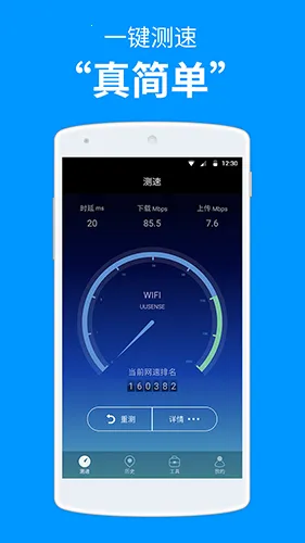 1. 一键测速超便捷,各种网络状况下,打开手机就能一键测试网速。