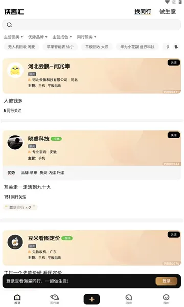 侠客汇是一款专为二手 B2B 社交贸易打造的移动应用。它能帮上游卖家高效散货,快速消化库存,缩短商品流转时间;为下游买家提供稳定可靠的二手数码产品优质货源,满足高品质需求。