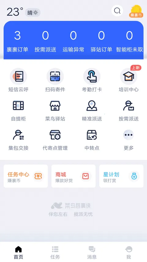 菜鸟裹裹快递员 APP 原名菜鸟包裹侠,是阿里旗下为快递员打造的智能平台。融合主流快递业务系统,集多种功能于一体,实现全流程数字化作业,提升效率与收入,是快递员日常工作核心工具。