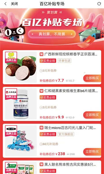 4、8.8包邮:全场满8.8元即享包邮!小件刚需、试用装、零食、日用轻松入手,低价不将就,省钱不费力。