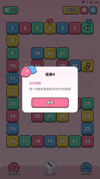 1. 无尽乐趣与亲密互动:投掷骰子按点数前进,在不同颜色格子移动,简单易上手,能让情侣享受其中,增进亲密感。