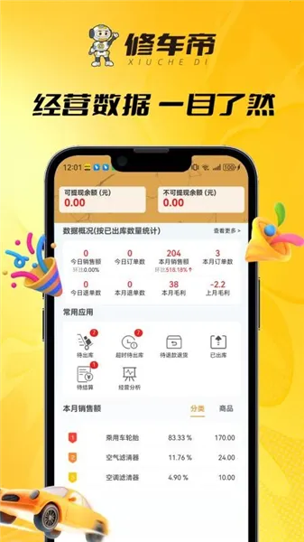 修车帝是北京众驰智通科技有限公司开发的汽修门店汽配采购工具。能扫描车架号精准匹配配件,提供99车型全品类资源,价格透明,智能分析经营数据,支持30分钟本地配送,一站式集成供应,采购简单优惠多。