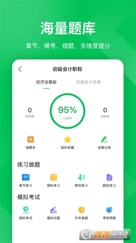 4. 智能题库助力高效刷题,有知识点练习、历年真题、全真模拟等,还能大数据分析智能组卷,并有做题记录、错题集与提问答疑功能。