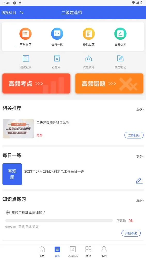 4. 智能测验:智能测验引入准人工智能分析,照亮你的二建备考路,提升学习效果。