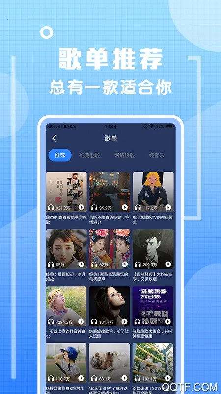 2、分类细致,无论是按歌曲类型还是其他维度,都能轻松找到喜爱的铃声,比如歌单分类有网络热歌、经典老歌、纯音乐等。