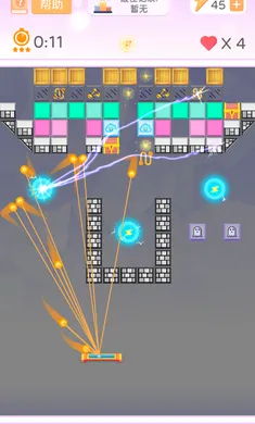 打砖块创作家是一款超有趣的游戏。在这游戏里,你要操控挡板反弹小球去击碎砖块来赢取胜利。它有108个精彩关卡,各类砖块和道具特别丰富,能让你尽情享受游戏乐趣。不管是想在闲暇时光找点乐子,还是想挑战自己的反应能力,它都能满足你。通过操控挡板反弹小球击碎砖块,能锻炼你的手眼协调能力。丰富的关卡保证你不会轻易感到乏味,每次都有新的挑战等着你。而且还有世界排行榜,增添了竞技性,你可以和全球玩家一较高下。如果你喜欢充满趣味和挑战的游戏,打砖块创作家绝对值得一试,它能为你带来一段欢乐又刺激的游戏时光,轻松帮你打发无聊,沉浸在精彩的游戏世界中。
