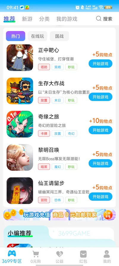 嘿,游戏爱好者们看过来!3699游戏盒大全简直是游戏天堂!它是一款超棒的手机游戏聚合平台,能满足咱各种游戏需求。这里汇集了海量热门手游,像仙侠、国战、休闲等各种类型都有,上千款游戏任你选。它还有各类特色版本,BT版、满V版、GM版啥的,让你体验不一样的游戏乐趣。平台下载速度快,安装也便捷,每天更新游戏动态、礼包福利和实用攻略,助你轻松进阶。而且哦,它有在线即玩专区,不用下载安装,点击就能玩,超省时间。还有超低折扣专区,0.1折充值优惠,花小钱也能称霸服务器。另外,能快速导入本地游戏,边玩边赚收益。每日更新任务,签到有福利,闲置游戏时长还能换钛豆。总之,3699游戏盒大全就是为咱玩家打造的,让咱尽情享受游戏的快乐!