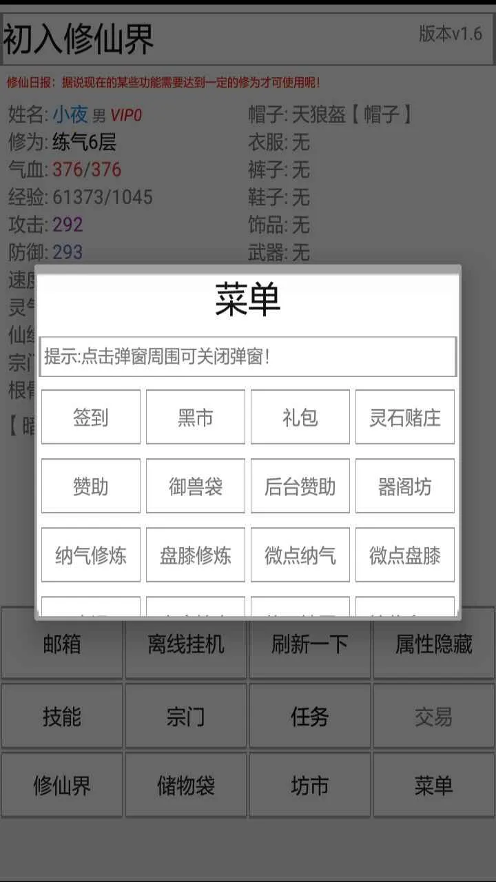 初入修仙界破解版是一款纯文字mud手游,有完整故事背景,多种玩法。含无限探索、轻松挂机、紧张PK等特色,还有原创剧情。可收集法宝、自由交易,通过修炼从凡人成为强大修仙者,体验独特仙侠冒险。