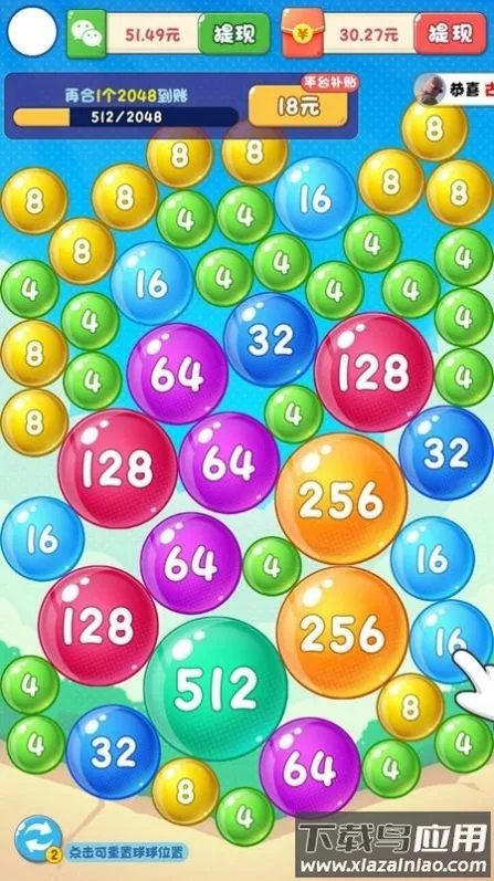 梦想2048最新手机版是款结合合成消除与休闲乐趣的小游戏。采用经典玩法,移动合并数字球合成更大数字,合成高分有红包奖励。操作直观,关卡多样,能锻炼能力,还有多种特色,如自定义样式等,适合休闲玩家。