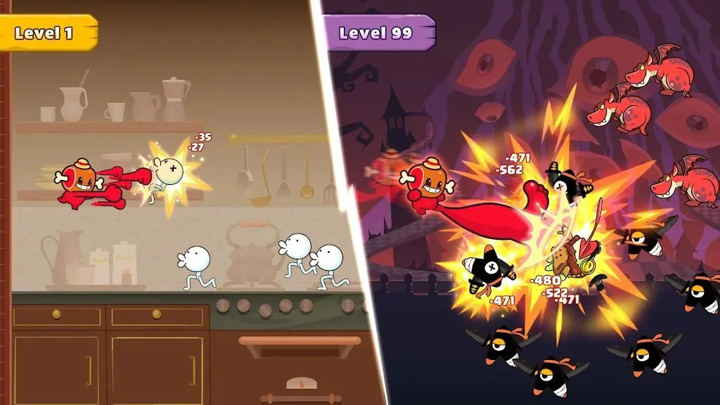 1、多元宇宙冒险:踏入荒诞不经却又乐趣无穷的多元宇宙,探索充满混乱、惊悚与喜剧的狂野平行世界,每个阶段都有更多疯狂、混乱和战利品,各种战斗地图带来不同挑战。
