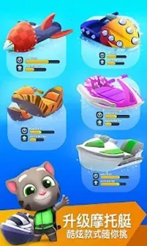 想体验精彩刺激的水上竞速之旅吗?那就来试试汤姆猫摩托艇2吧!在这款游戏里,你能与汤姆猫、安吉拉等熟悉的卡通伙伴一同驾驶摩托艇,穿梭于五个不同世界,像安吉拉的海滨度假村、狗狗本的实验室等地,沿途风景美不胜收。