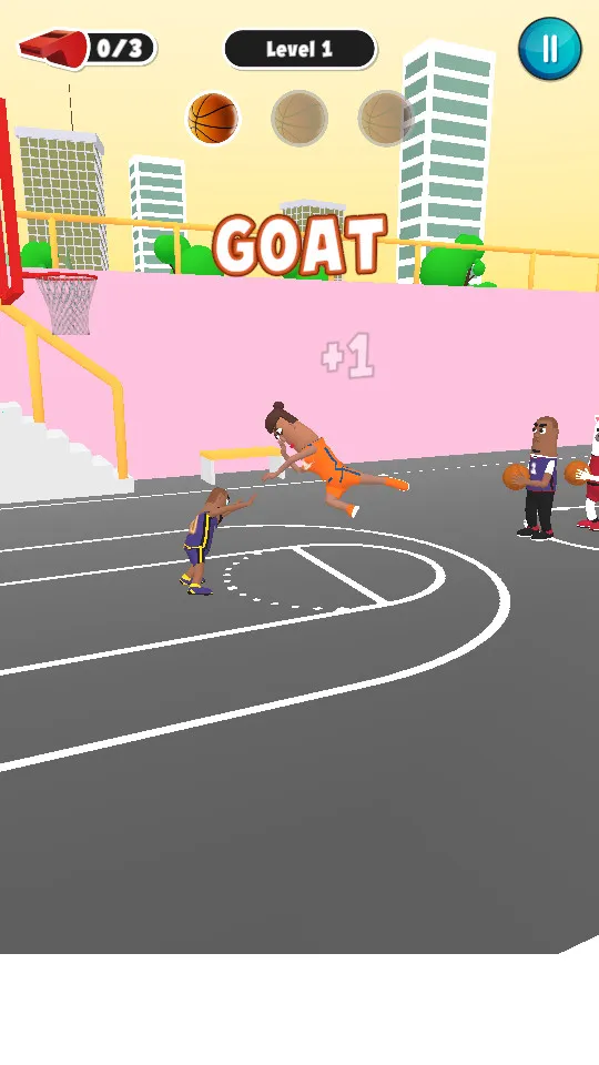 2、自由的操作体验:去除重力系统,可自由跳跃,通过简单手指拖动精准投篮,多指操作还能展现华丽技巧。