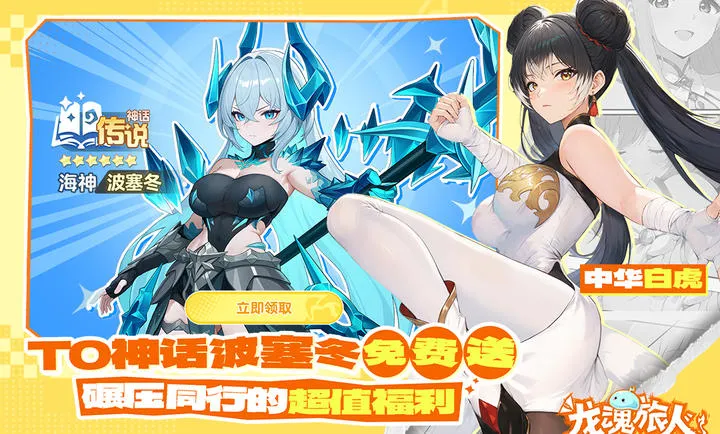 2. 福利丰厚,不氪金也能玩得畅快。T0 白虎上线可领,SSR 幻灵每周必得,限定 UP 池 100 不歪,50 抽保底。