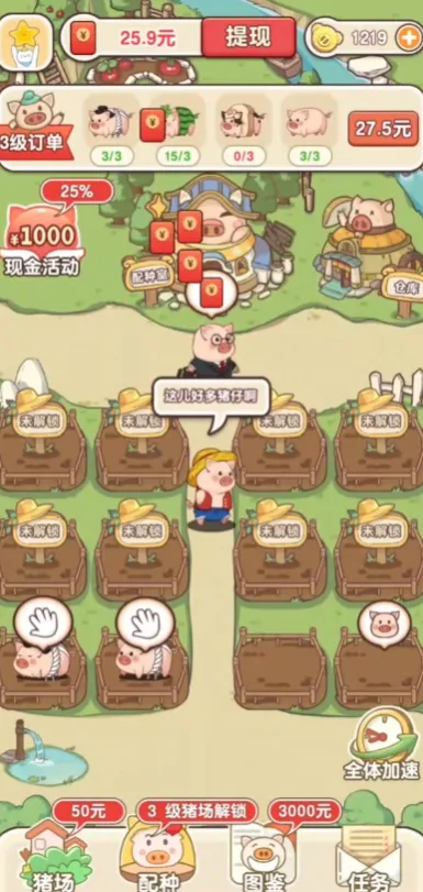 猪猪多福赚钱小游戏是一款可爱卡通风格的手机养成游戏。玩家扮演养猪场主人,饲养小猪出售获利,升级猪场、买高级猪崽。通过完成订单任务得红包,操作简单,节奏轻松,适合全年龄段放松体验。