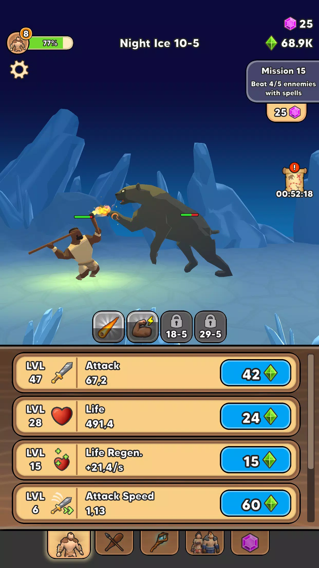3. 持续成长进化:通过无限升级进化猎人,获得更多属性提升和新皮肤,随着成长解锁强大法术,击败更强敌人。