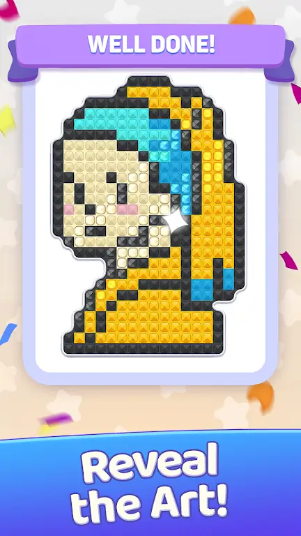 1、丰富多样的艺术收藏:游戏提供了数以百计的像素艺术作品,涵盖美丽自然风光到可爱角色等各种类型,且不断增加新作品,每次分类都是创作,带来无限可能。