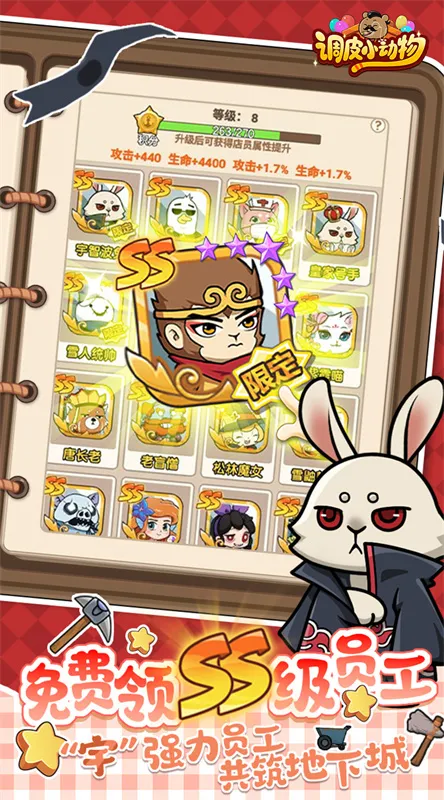 《调皮小动物2025最新版本》特色满满。它融合武侠与奇幻,有生动可爱的Q版动物角色。独特的秘籍修炼玩法,64本武功绝学、5种品质、14大门派、10大职业可自由组合,搭配出各异武学秘技。装备玩法独特,有五行属性效果,词条玩法丰富。英雄养成系统完善,数十名英雄持续更新,通过升级和升星提升战力。还有宗门玩法能打造最强联盟,VIP养成无氪金压力,放置挂机离线也有收益,能给玩家带来丰富且有趣的游戏体验。