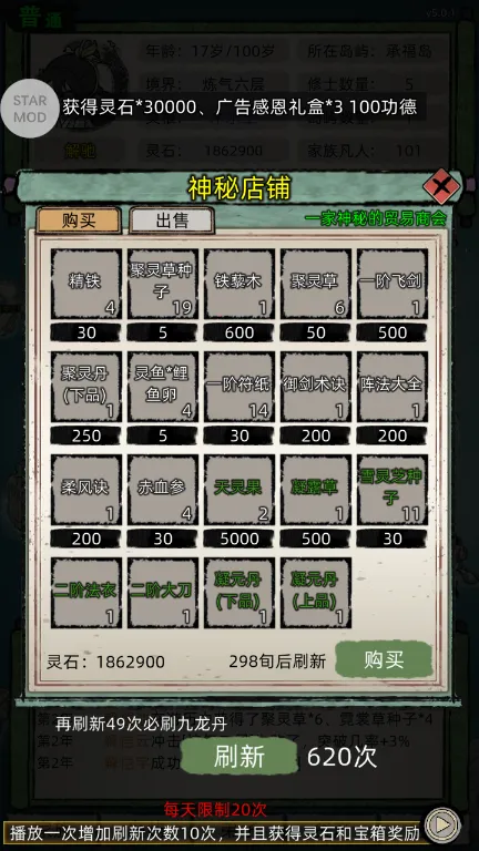 给你些实用攻略:开局带升仙台、大道荒搭、小绿瓶,点五灵根,选上合适天赋。发育阶段靠种田、炼丹、养鱼赚钱,前期种聚灵草等,养单灵根炼丹师炼破障丹卖,有条件炼筑基丹就不愁钱。种田慢,来钱快就掠夺,前期探索秘境、打比赛。功法前期选加修炼速度的,让族人60岁前筑基。培育弟子找血脉高和天灵根的结婚,练福佑丹或送福佑草。这游戏能让你体验真实修仙生活,享受热血对决,展开冒险挑战,快来试试吧!