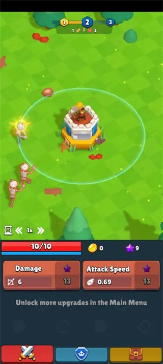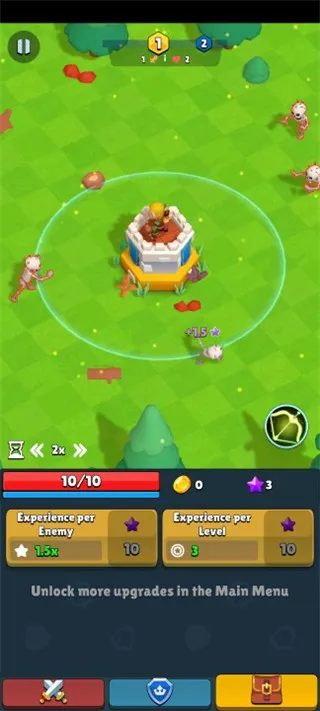 4. 能升级获取资源数量,增加游戏倍速,挑战强大boss,保卫王国。