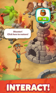 1、踏入史前世界,物品融合是关键,匹配相同物品创造奇特石器工具,每次融合解锁新资源升级与生产链,助力村庄繁荣。
