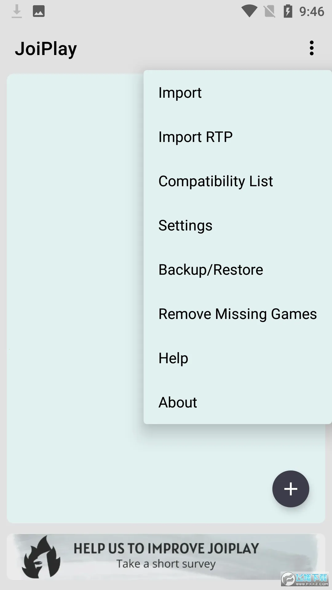 JoiPlay模拟器1.20.410可在安卓设备运行RPGMaker游戏,操作简单自带中文。支持多种游戏引擎,能移植电脑游戏,有跨平台存档、高级设置、内置作弊菜单等功能,导入游戏和修改字体也较便捷。