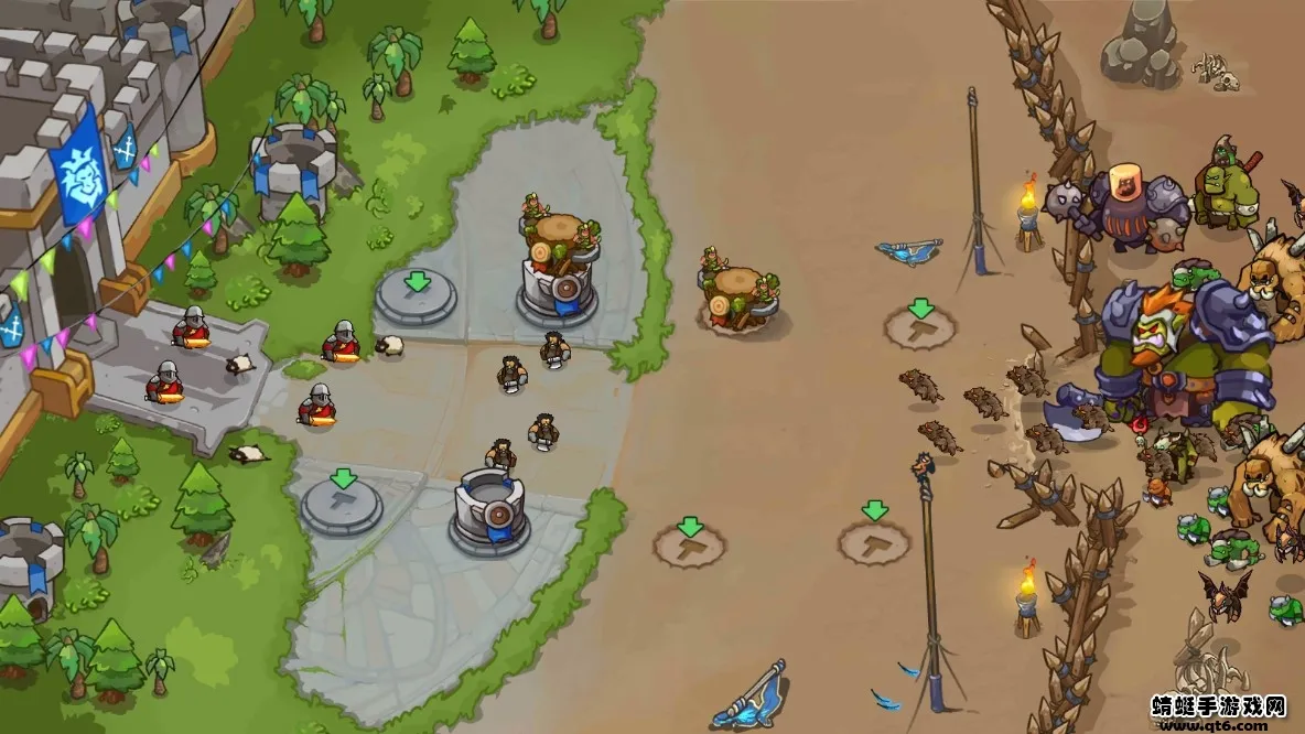 2、拥有多种防御塔,从普通箭塔开始,玩家可选择不同分支升级,获得武士塔、炮塔、巫师塔等各种进化,能针对性消灭来袭敌人。