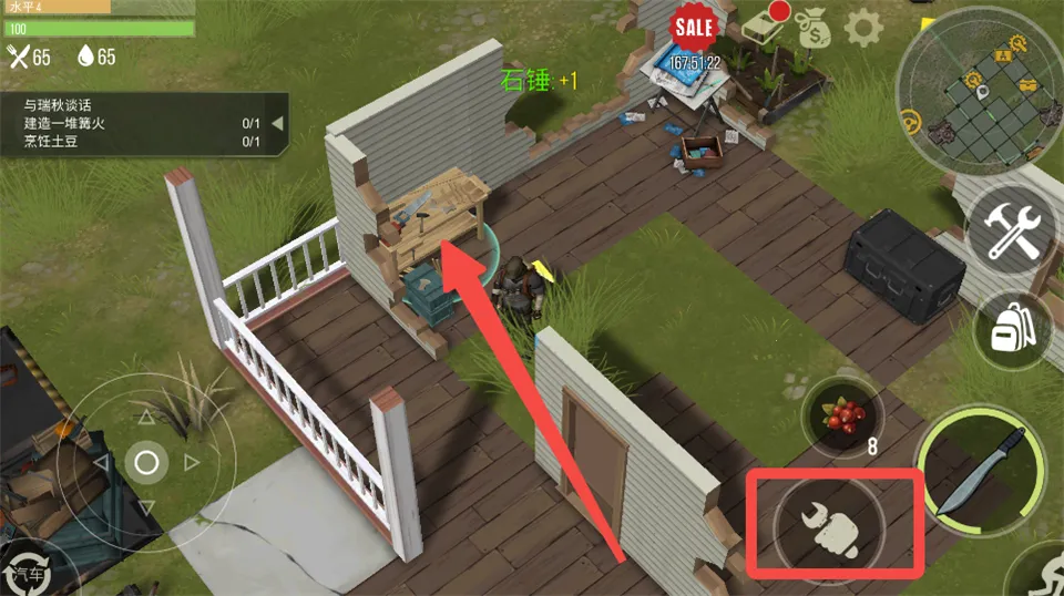 4、操作便捷,如制作物品时前往家中制作台,点击相应图标就能轻松制作,开启自动探索也只需简单点击界面左下角汽车标识。