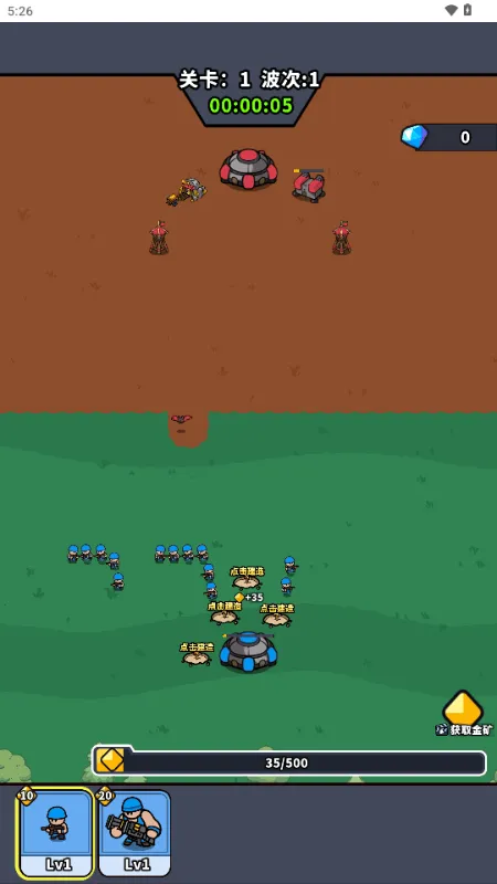 3. 策略对战:以基地攻防为核心,玩家通过建造金矿积累资源,搭建防御工事,凭借画线操作召唤兵种出击,灵活包围或突袭敌军,充满策略性。